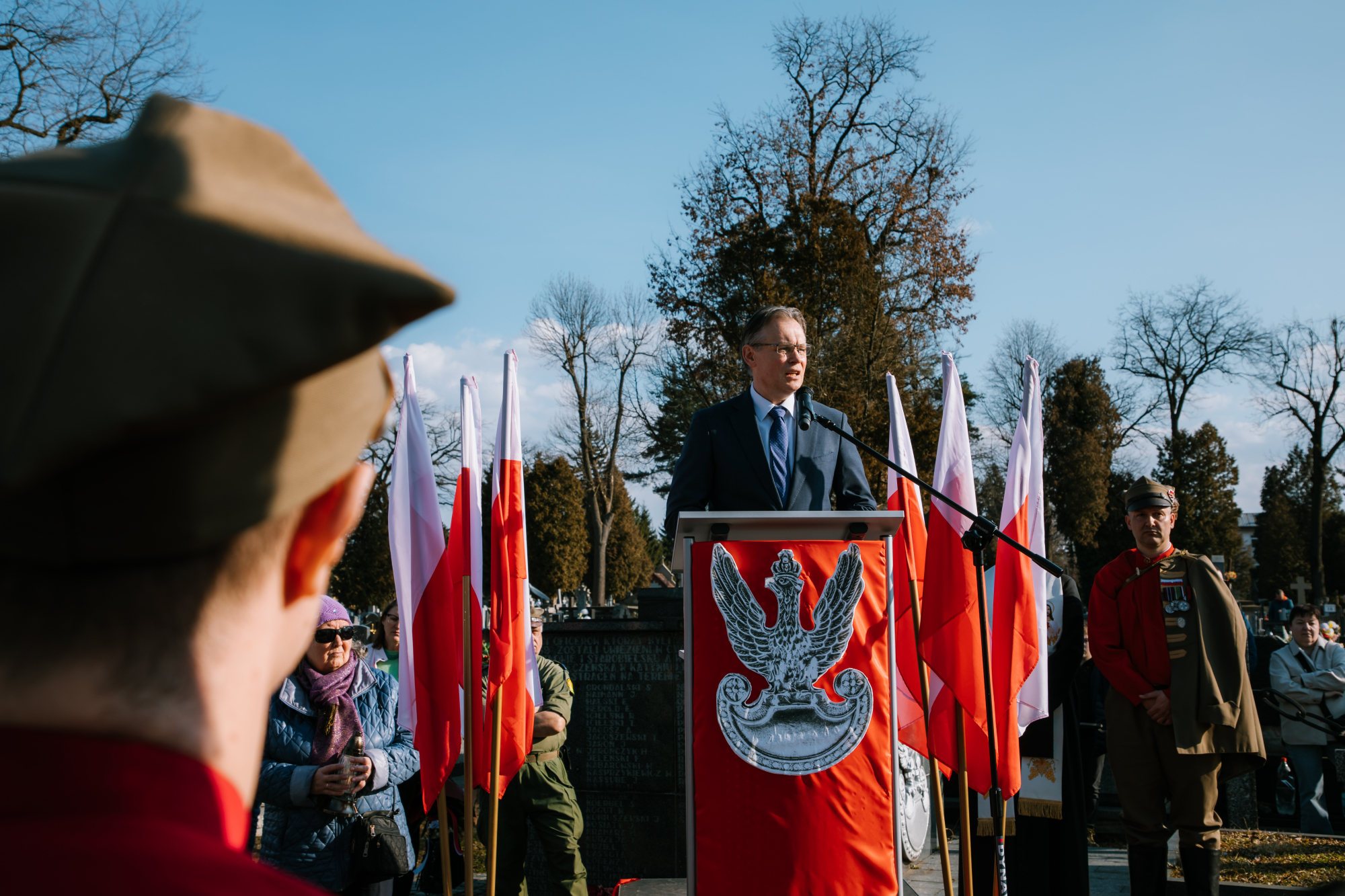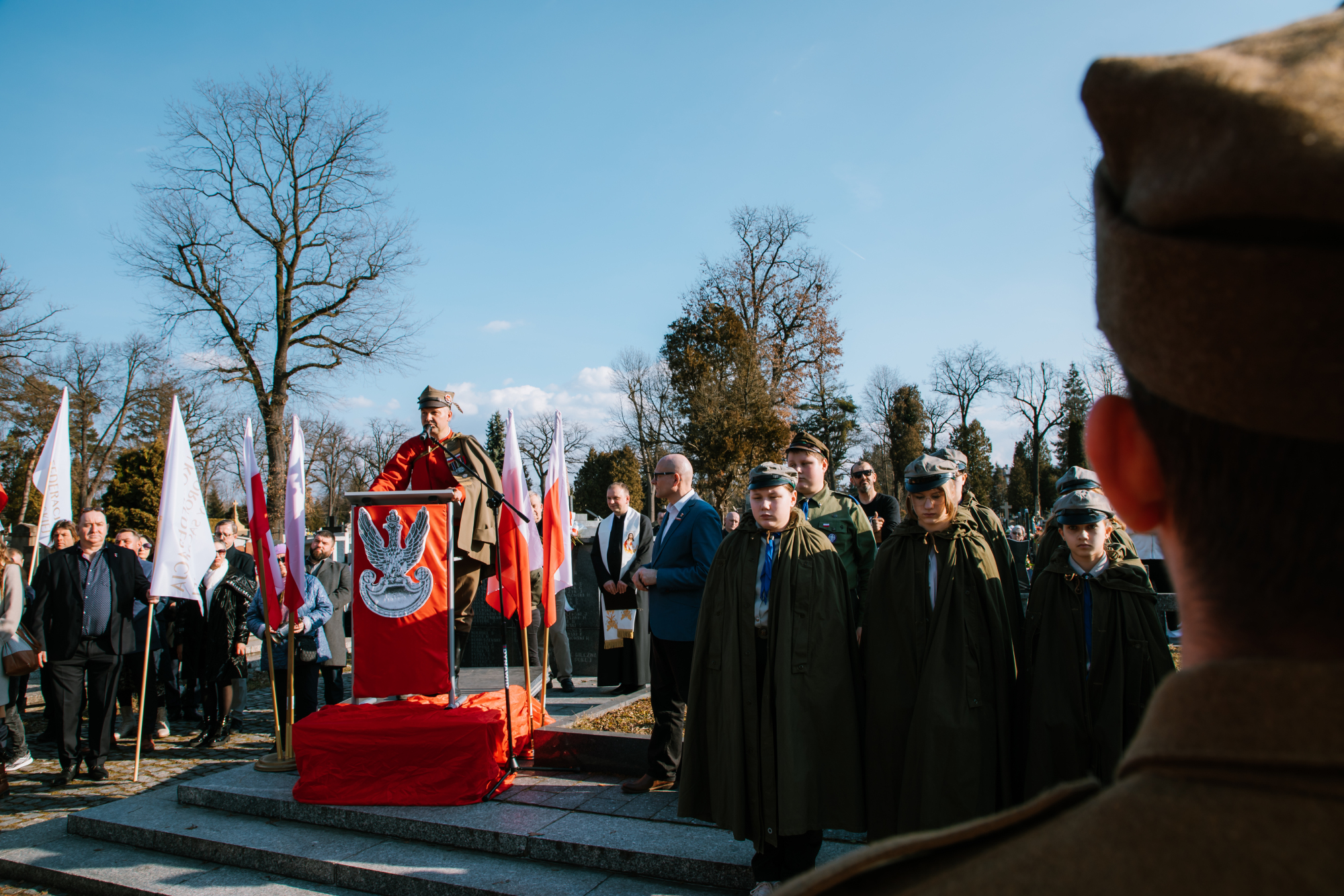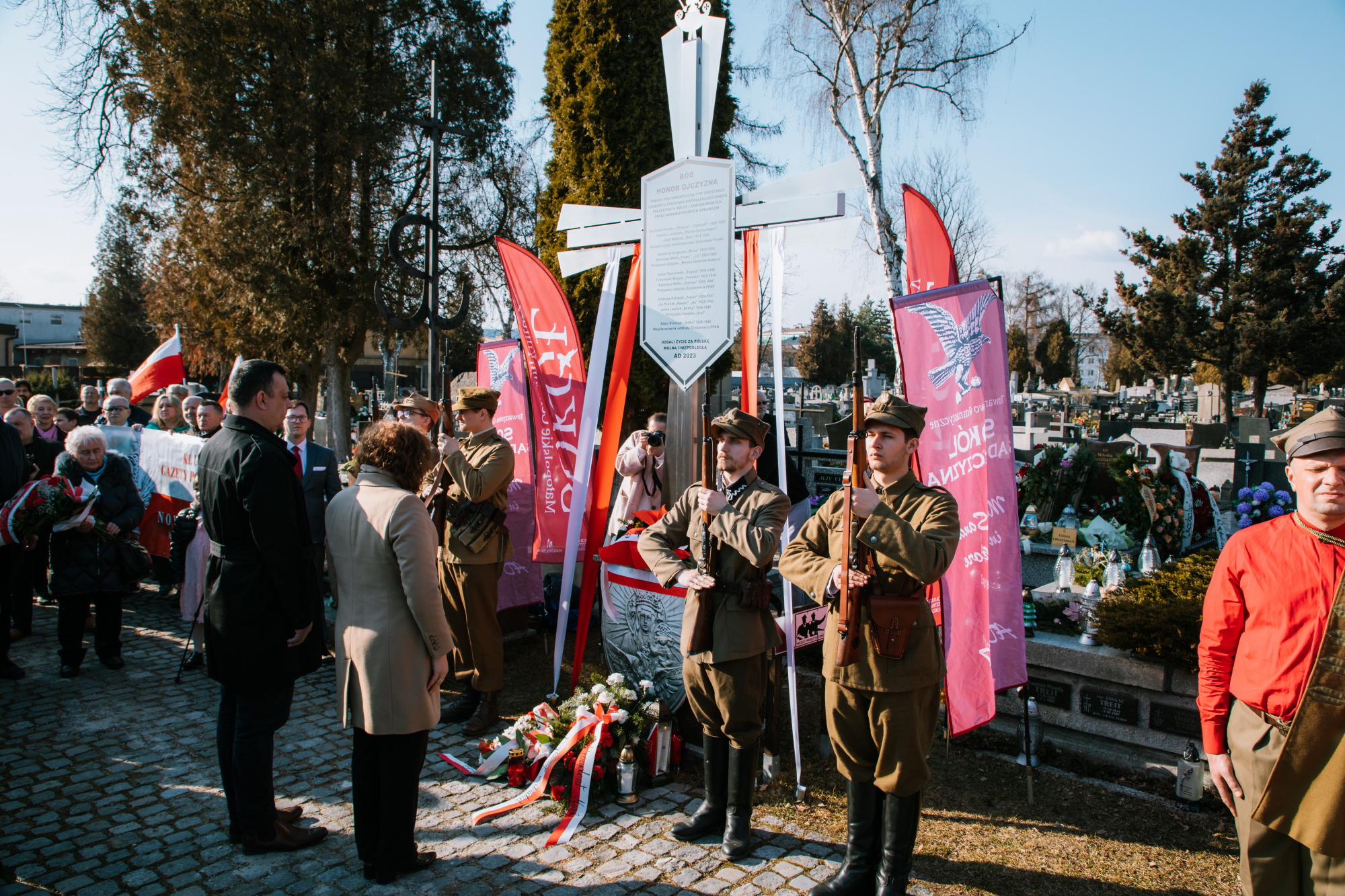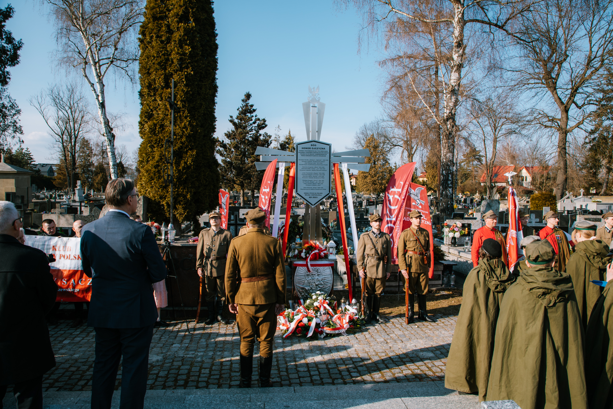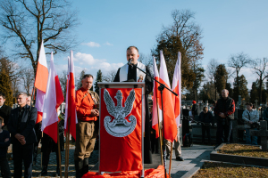 W części oficjalnej głos zabrali zaproszeni goście. Poseł do Parlamentu Europejskiego, Arkadiusz Mularczyk, podkreślił wagę rozważania na nowo życiorysów bohaterów podziemia zbrojnego oraz wspierania misji Instytutu Pamięci Narodowej. Z kolei Krystian Lachner, prezes Ruchu Narodowego w Nowym Sączu, wskazał na konieczność budowania przestrzeni pamięci o bohaterach w szkołach i placówkach dydaktycznych.