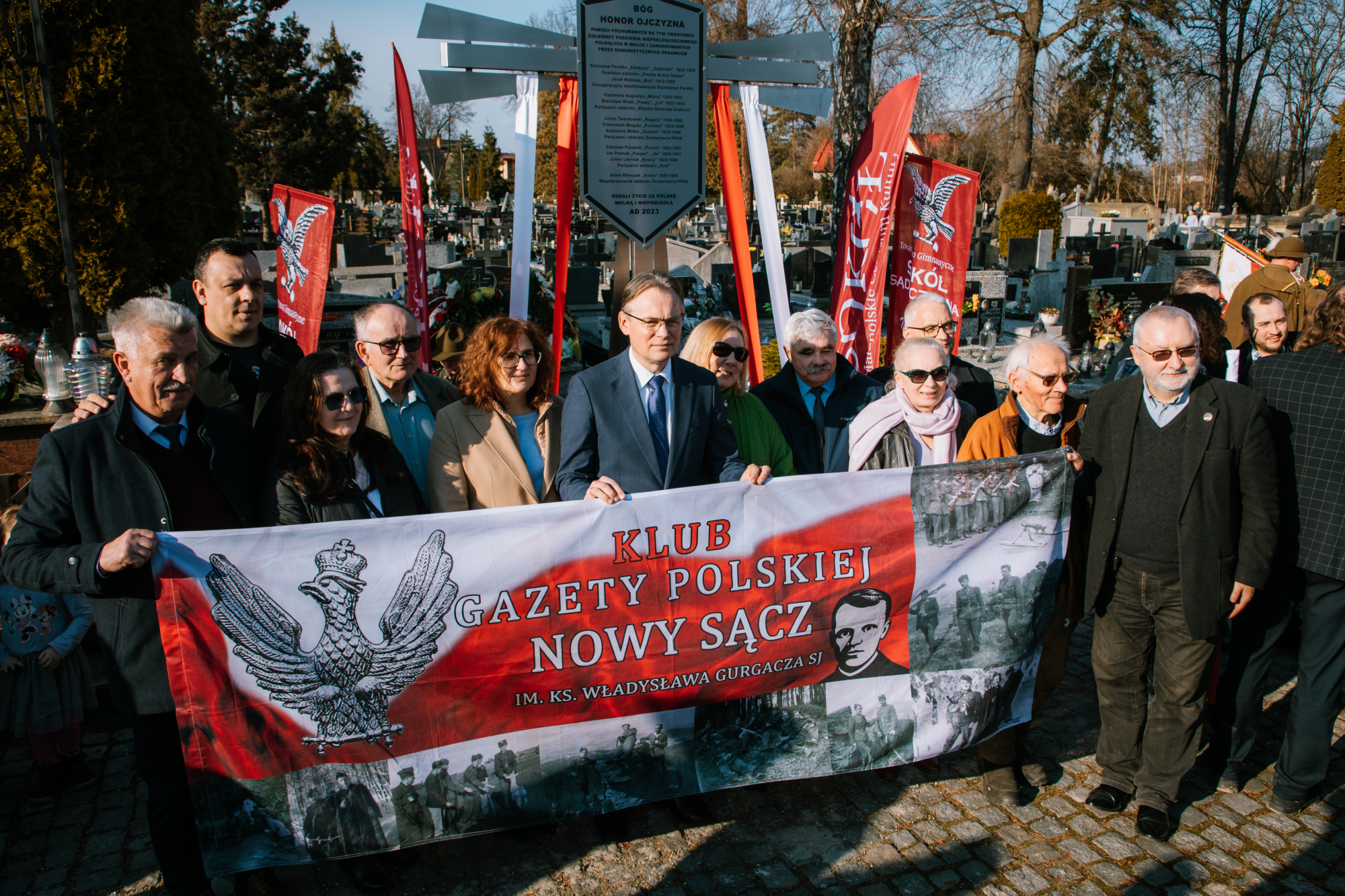 Obchody zainaugurowano na Cmentarzu Komunalnym przy ul. Rejtana w Nowym Sączu. To właśnie tam, przy Krzyżu Sądeckich Żołnierzy Wyklętych wzniesionym przez sądeckie Sokolstwo i Grupę Rekonstrukcji Historycznych „Żandarmeria”, oddano hołd bohaterom antykomunistycznego podziemia. Wartę honorową pełnili przedstawiciele Towarzystwa Gimnastycznego „Sokół Sądecczyzna”, Stowarzyszenia Rekonstrukcji Historycznych 1 Pułku Strzelców Podhalańskich, Nowosądeckiej Drużyny Harcerstwa Polskiego „Sokoły” oraz Stowarzyszenia Żandarmeria. Modlitwę za poległych poprowadził ks. Tomasz Starzec, proboszcz Parafii pw. św. Kazimierza.