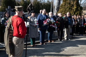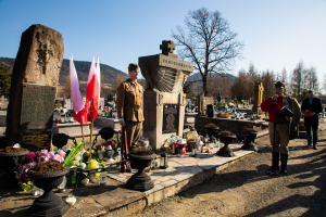 Spotkanie rozpoczęło się na Cmentarzu Parafialnym w Nawojowej przy pomniku podziemia niepodległościowego oraz grobie spoczywających tam partyzantów – Stanisława Pióry ps. „Emir” i Adolfa Cecura ps. „Lew”. W obecności pocztów sztandarowych oddano hołd poległym żołnierzom podziemia antykomunistycznego. Delegacje złożyły kwiaty i zapaliły znicze. W imieniu Małopolskiego Centrum Kultury SOKÓŁ kwiaty złożył dyrektor Andrzej Zarych.